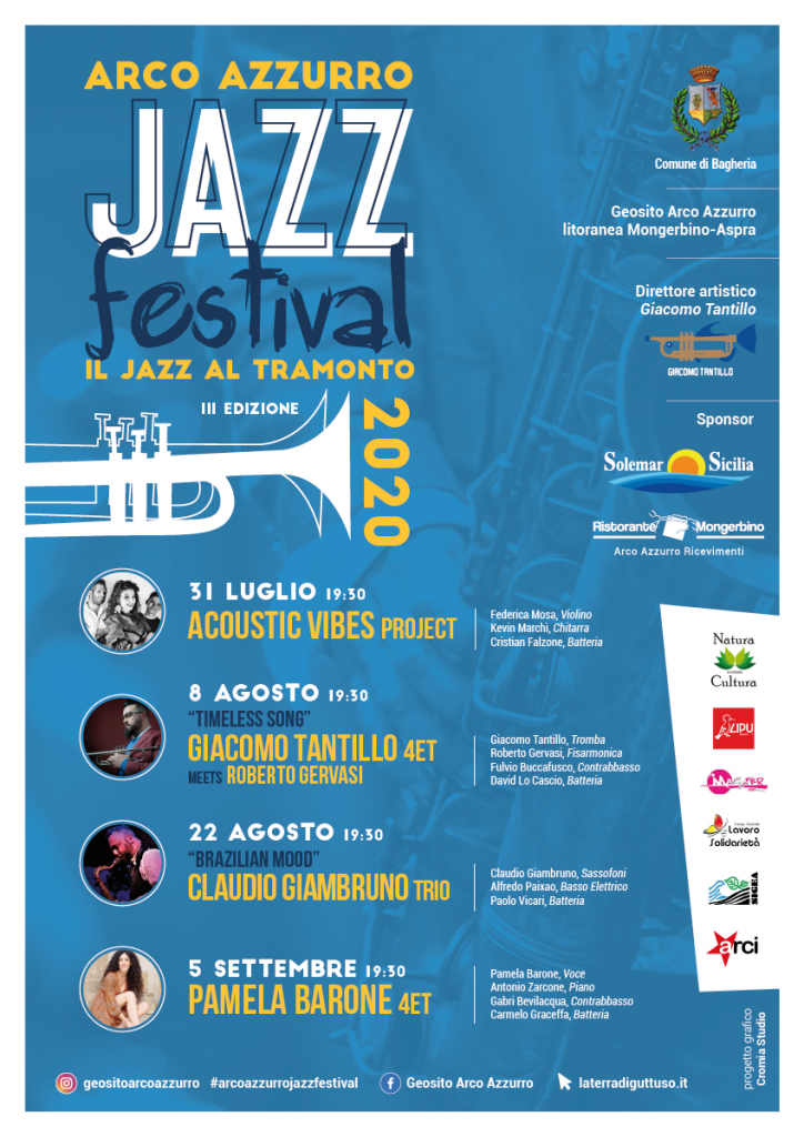 E' il primo appuntamento della rassegna jazz Arco Azzurro festival, il jazz al tramonto, patrocinata dal Comune di Bagheria e con il direttore artistico il trombettista bagherese Giacomo Tantillo.