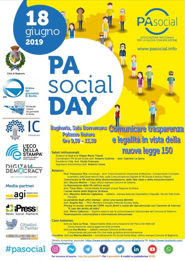 E’ in programma il Pa Social Day, evento internazionale patrocinato dal Comune di Bagheria, dall’Ordine dei Giornalisti di Sicilia e da Assostampa.