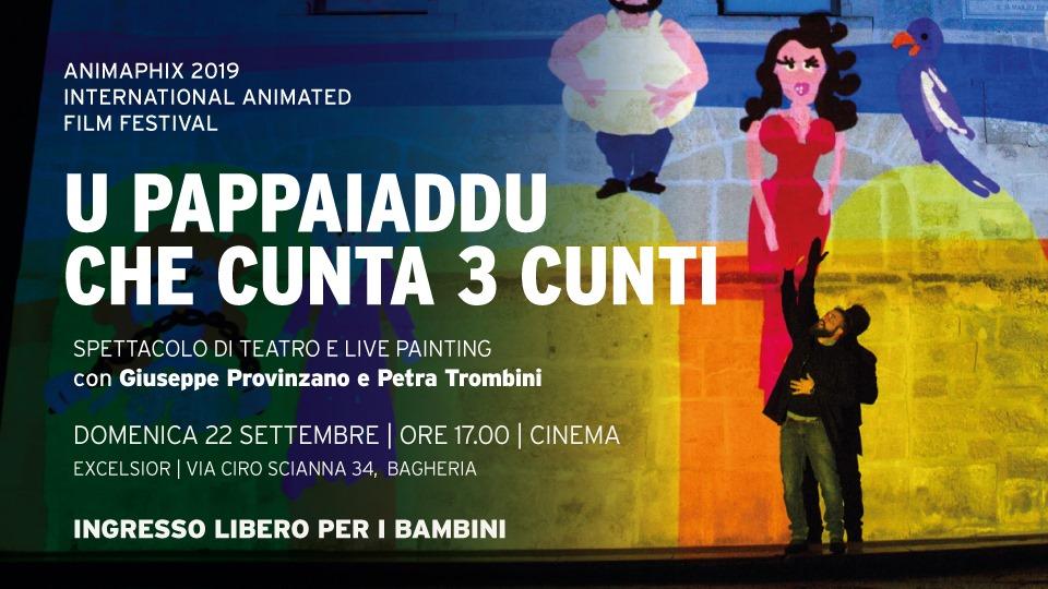 Nuovo appuntamento per i bambini, domani, alle 17,00, presso il cinema Excelsior di Bagheria, "U pappaiaddu che cunta 3 cunti", spettacolo di teatro e live painting a cura di Giuseppe Provinzano e Petra Trombini prodotto da Babel Crew e Museo Antonio Pasqualino.