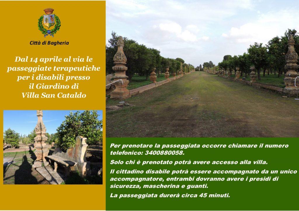 Prende il via martedì 14 aprile il servizio che consente ai concittadini disabili, brevi uscite accompagnate per fini “terapeutici” presso il Giardino di Villa San Cataldo.