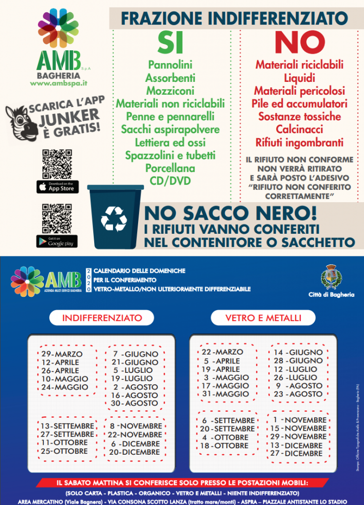 Infine l'amministrazione comunale invitata tutti i cittadini a scaricare sui propri telefoni mobili la app gratuita junker che non solo aiuta a capire cosa si può differenziare e cosa no, in maniera semplice anche attraverso l'invio di una foto del prodotto da gettare, ma ha la possibilità di poter ricevere delle notifiche che ricordano, tra le altre cose, la frazione che si conferisce nello specifico giorno in cui si riceve la notifica.