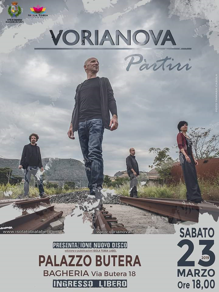 Si terrà Sabato 23 marzo alle ore 18 a Palazzo Butera a Bagheria il concerto di presentazione del nuovo lavoro discografico dei Vorianova, “Pàrtiri”, pubblicato e distribuito dalla casa discografica toscana Isola Tobia Label di Carlo Mercadante.