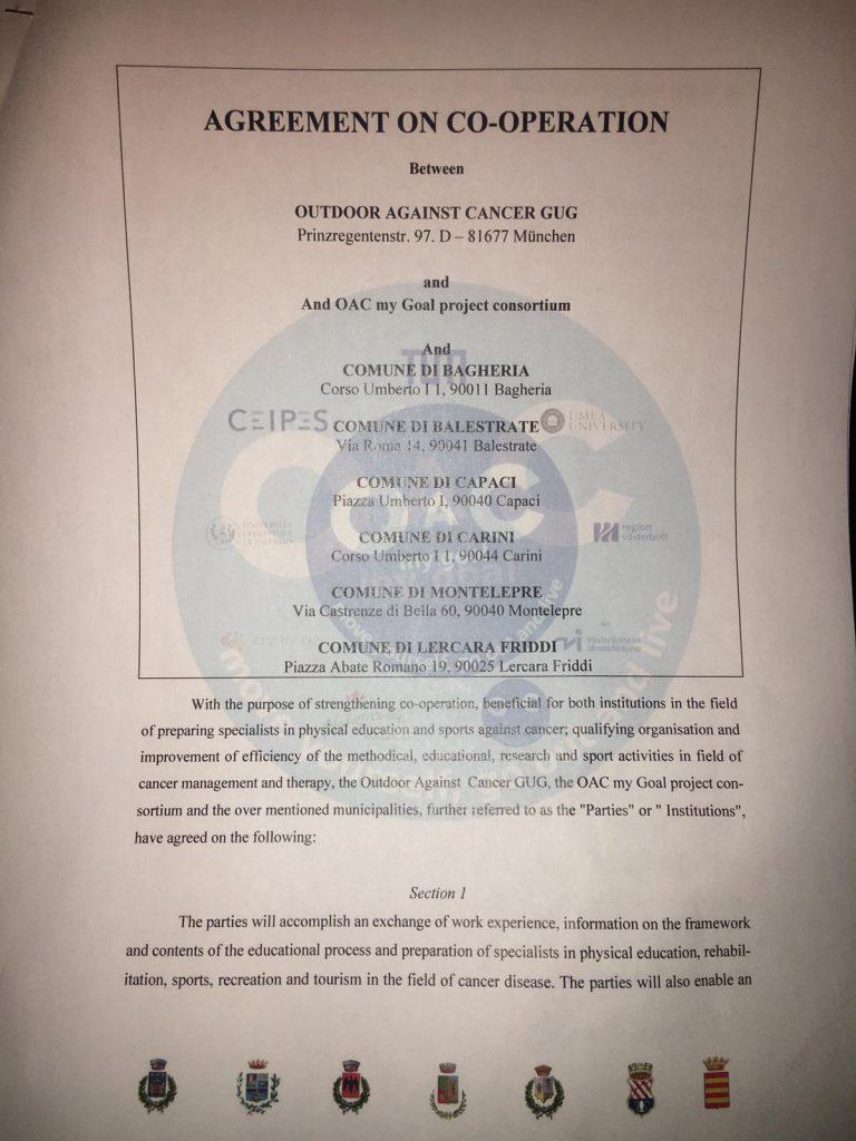 Lotta al cancro: anche Bagheria aderisce all'accordo OAC: MY GOAL MEETING EUROPEO A PALERMO
