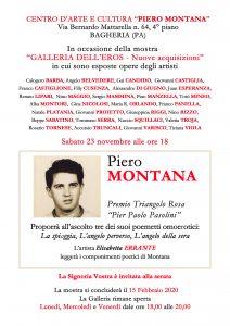 tro d’arte e cultura Piero Montana, che ospita fino al 14 febbraio 2020 la mostra “Galleria dell’eros-Nuove acquisizioni" , ci sarà la recita di poesie omoerotiche dello stesso Montana.