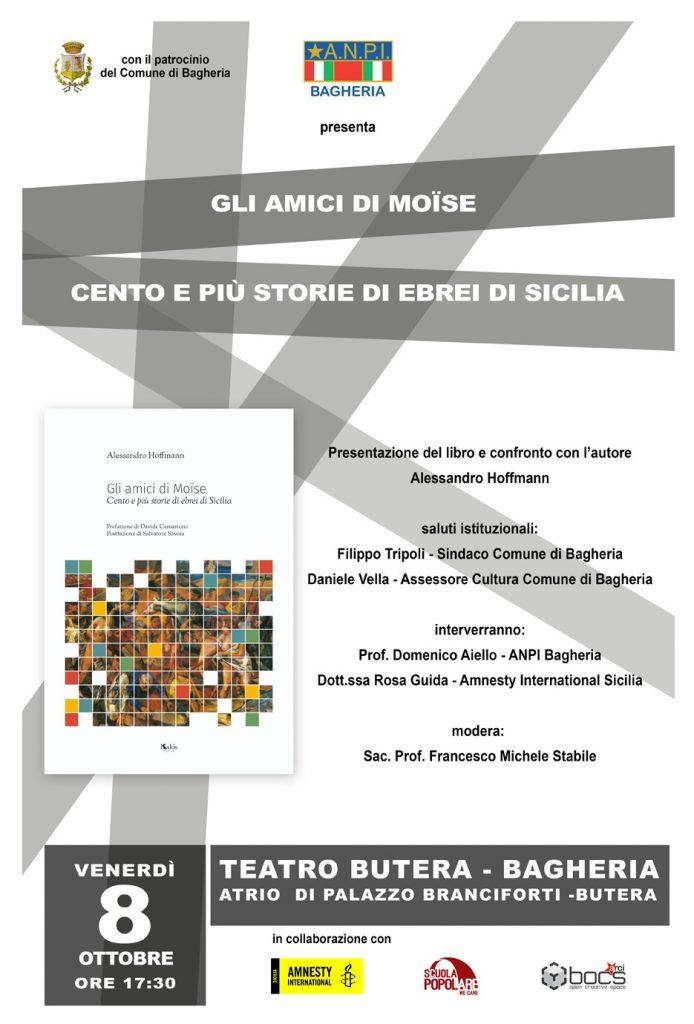 Organizzato dall'ANPI di Bagheria con la collaborazione di Bocs, della Scuola popolare di Bagheria, di Amnesty international Sicilia, ed il patrocinio del Comune di Bagheria venerdì 8 ottobre, alle ore 17,30 si presenta il libro di Alessandro Hoffman "Gli amici di Moïse -cento e più storie di ebrei di Sicilia" edito da Edizioni d'arte Kalòs.