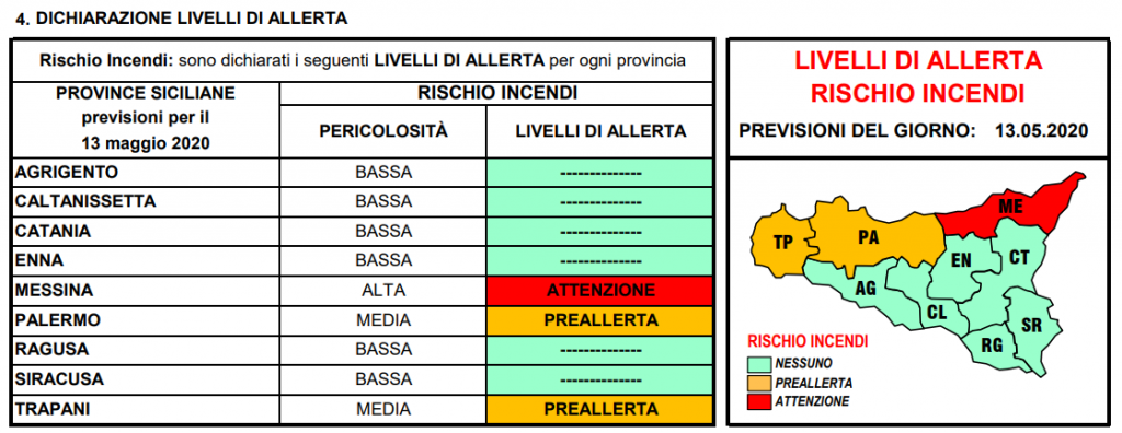 Le precipitazioni sono assenti o non rilevanti ed i venti sono forti, fino a burrasca, quindi il rischio incendi è altro, appunto in allerta arancione.