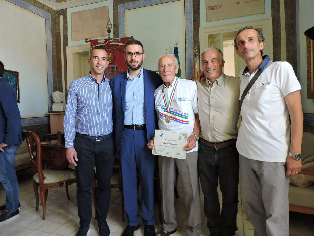 Con i figli, anche essi corridori, e gli amici e quanto gli vogliono bene oggi, l’arzillo atleta è stato ricevuto dal sindaco Filippo Tripoli e da tutta la Giunta al completo.