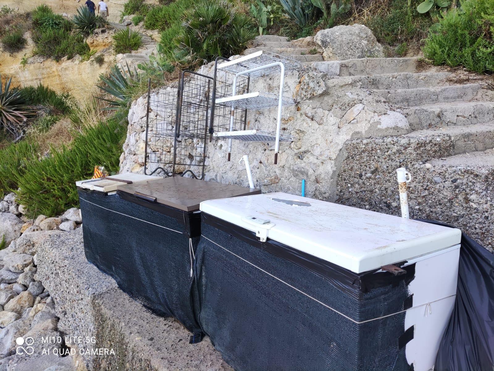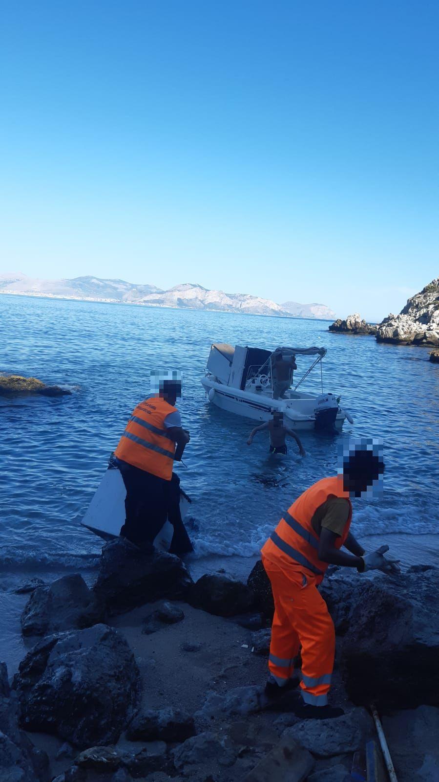I vigili urbani con la squadra di Aspra guidata dall'ispettore Santo Gagliano, con il supporto degli operatori di AMB si stanno adoperando per rimuovere i pozzetti intervenendo via mare con una barca.