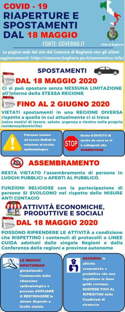 A partire dal 18 maggio 2020, gli spostamenti delle persone all’interno del territorio della stessa regione non saranno soggetti ad alcuna limitazione. Lo Stato o le Regioni, in base a quanto previsto dal decreto-legge 25 marzo 2020, n. 19, potranno adottare o reiterare misure limitative della circolazione all’interno del territorio regionale relativamente a specifiche aree interessate da un particolare aggravamento della situazione epidemiologica.