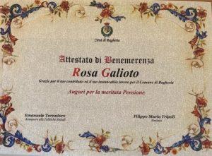 Anche per la dipendente Rosa Galioto è arrivato il momento della pensione. Dopo 33 anni di servizio presso le scuole come dipendente addetta al dopo scuola comunale e 7 anni di impego amministrativo presso l'assessorato alle Politiche Sociali stamani la dipendente ha salutato i colleghi e l’amministrazione.
