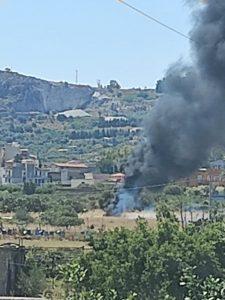 Le fiamme, al momento, sono quasi del tutto domate, dalla zona era visibile una lunga colonna di fumo.