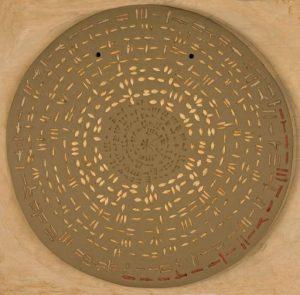 La mostra è strutturata secondo un percorso che parte dall’archeologia sacra dei segni cuneiformi di antiche civiltà, nel proporre, come fa ad esempio Salvatore Salamone, una dimensione arcaica e prettamente creazionista del linguaggio, da cui secondo anche dottrine bibliche e kabbalistiche ebbe origine il mondo, l’universo, per poi giungere, con Agostino Tulumello, a rappresentare, nel nostro mondo moderno, rispetto all’ origine, al carattere sacrale del Verbo, una sua involuzione che pertanto viene a sostituire al Fiat lux del creazionismo della Parola semplici impronte di una grafia misteriosa, illeggibile, snaturata del suo senso originario. Dell’ iniziale potere magico, divino del Verbo tale grafia verrebbe a manifestare anzitutto solo l’assenza fantasmatica, l’oblio. La mostra nella sua interezza è dunque una “riflessione” sull’oblio del Logos, di quel Logos che evangelicamente fu in Principio. E di certo é nel recupero di una dimensione trascendente del linguaggio che gli artisti nisseni operano fondamentalmente, sviluppando nei loro lavori delle intuizioni degne di molta attenzione per la loro originalità. La dimensione trascendente del linguaggio trova infatti la sua piena espressione pittorica nelle opere di Michele Lambo attratto dalla vertigine dell’infinito in cui l’artista sembra precipitare, Leopardi avrebbe meglio detto “naufragare”, alla ricerca dell’origine dell’Assoluto, al di là delle matasse galattiche, rappresentate dalla parola infinito, nei suoi dipinti, scritta e ripetuta in tutte le direzioni un’infinità di volte. Di questo stesso infinito vibrano gli echi spaziali che sembrano propagarsi dentro e oltre le tele di Giuseppina Riggi, per tali motivi non supportate da cornici che all’illimitato verrebbero a porre dei confini. Con Franco Spena assistiamo palesemente alla denuncia dell’eclissi, del tramonto definitivo dell’origine sacrale del Verbo, mettendo l’artista in rilievo nelle sue opere un linguaggio non più arcaico, primordiale, bensì moderno, attuale, pop, il linguaggio, per essere più precisi, stampigliato nelle odierne lattine di bibite, con cui costruisce mosaici di un alfabeto metallico, più congeniale alla nostra attuale e meccanica civiltà del progresso. Un alfabeto di marmo, appena accennato da alcune vocali e consonanti, nella sua rigorosa essenzialità classica, ci viene proposto infine da Lillo Giuliana, le cui opere, dei bassorilievi per l’appunto marmorei, sembrano costituire lapidi con sopra scolpite lettere alfabetiche che, sia isolate che casualmente assemblate, nella loro molteplice, infinita combinazione evocano tutto il loro potere creativo, poetico.
