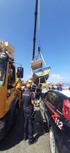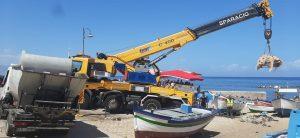 Vasta operazione oggi di rimozione di alcune barche e natanti abbandonati sul tratto levante della spiaggia del lungomare d di Aspra.