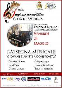 Si terrà, oggi venerdì 24 maggio, l'evento concertistico "Rassegna musicale: Giovani pianisti a confronto" a palazzo Butera, sala Borremans, alle ore 21,00.