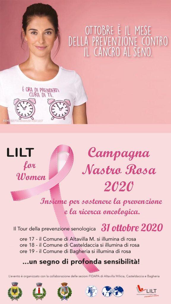 Il Comune di Bagheria si è illuminato di rosa questa sera. L'amministrazione comunale di Bagheria, ha aderito alla campagna Nastro Rosa 2020 organizzata dalla rete Lilt for women per sostenere la prevenzione della ricerca oncologica.