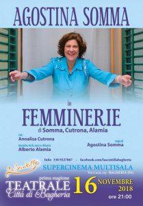 Da non perdere domani 16 novembre 2018 la rappresentazione teatrale “Femminerie” di Cutrona, Somma e Alamia della compagnia teatrale “Comicamente Seri” che si terrà al Supercinema di Bagheria.