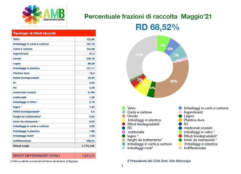 «Un record per Bagheria che se mantenuto, come si prospetta, porterà la città al ricevimento,  il prossimo anno di una premialità da parte della Regione. Nei prossimi giorni visti i risultati positivi ci saranno grandi novità come nuovi ecopunti ed uno specifico sistema di pesatura del rifiuti che assegnerà delle premialità» dichiara il presidente AMB.