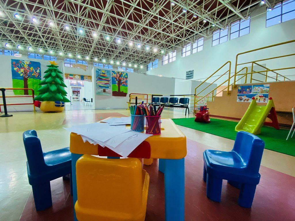L'hub vaccinale presso il palazzetto dello sport di Bagheria organizzato dall'Asp, dal Comune di Bagheria e dalla Protezione civile si è attrezzato per rendere accogliente lo spazio dedicato ai bambini per la vaccinazione anticovid.