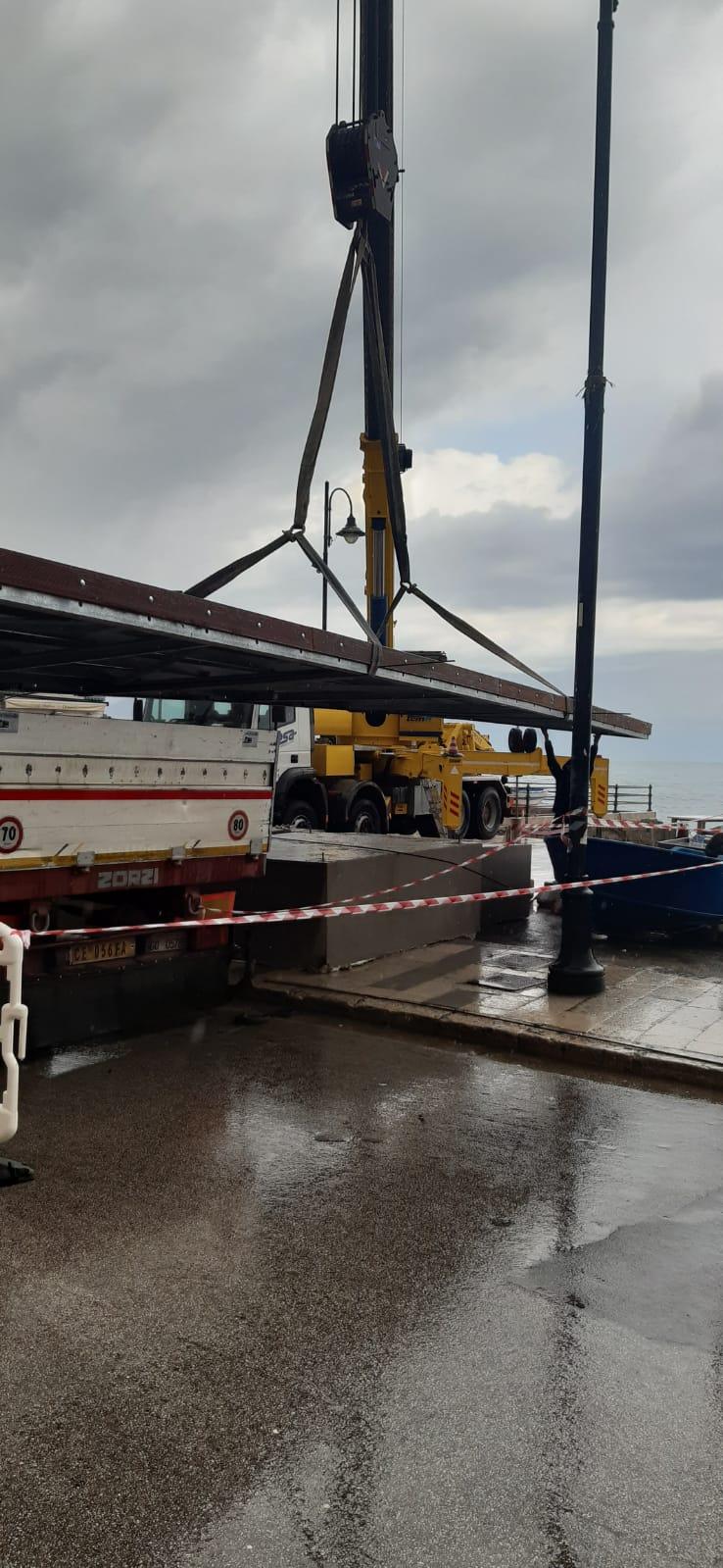 Temporaneamente i pontili saranno posizionati sul lungomare per prendere il loro posto naturale in acqua ad Aprile.