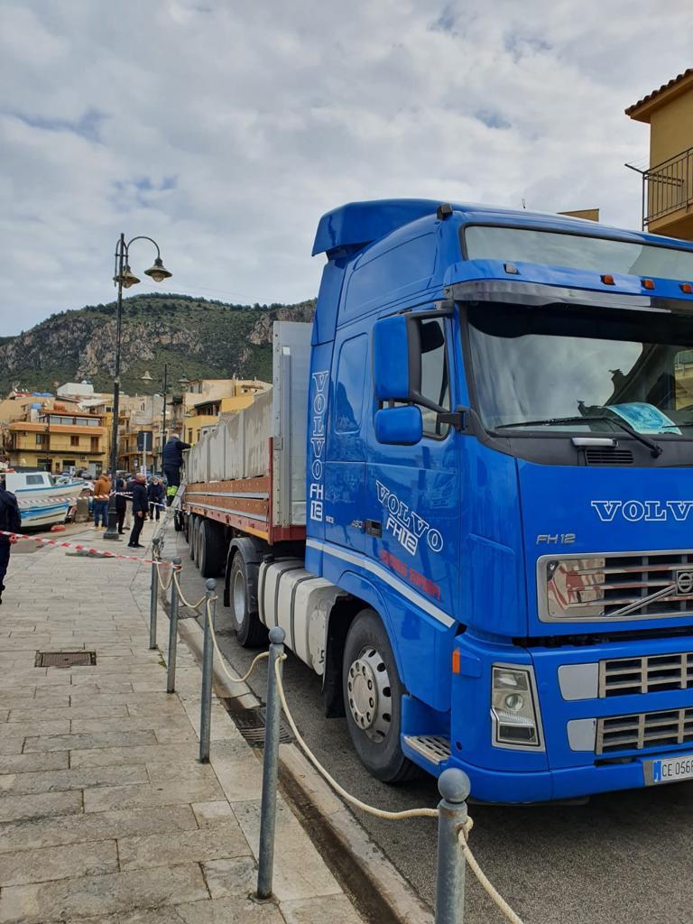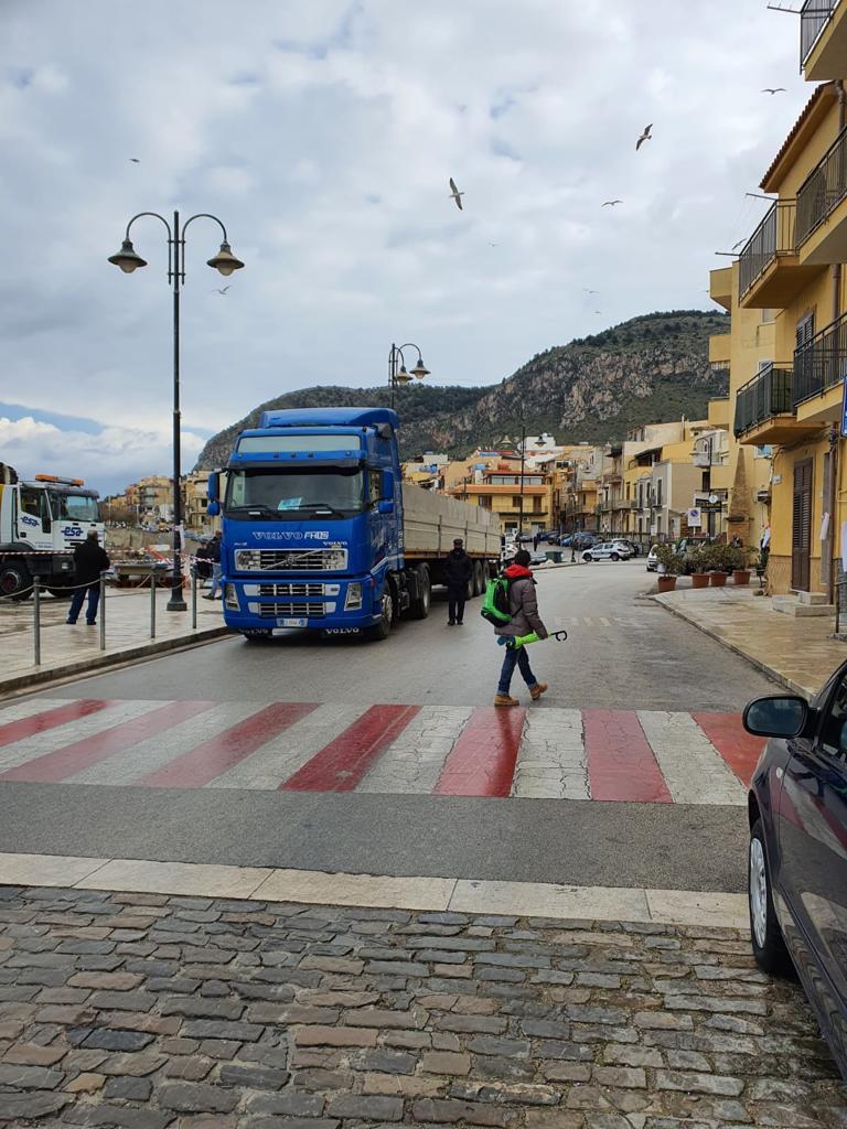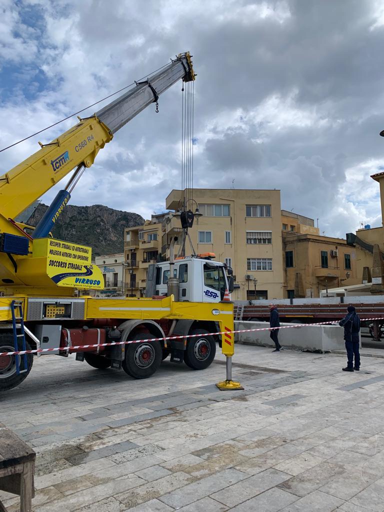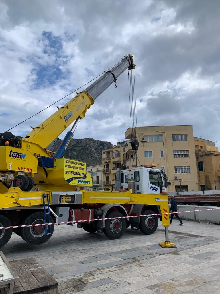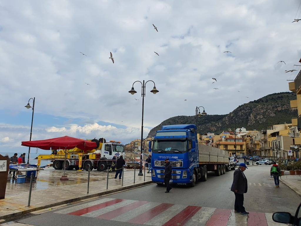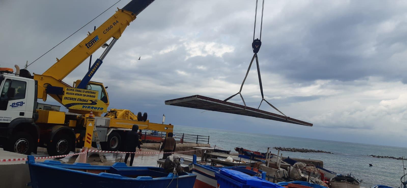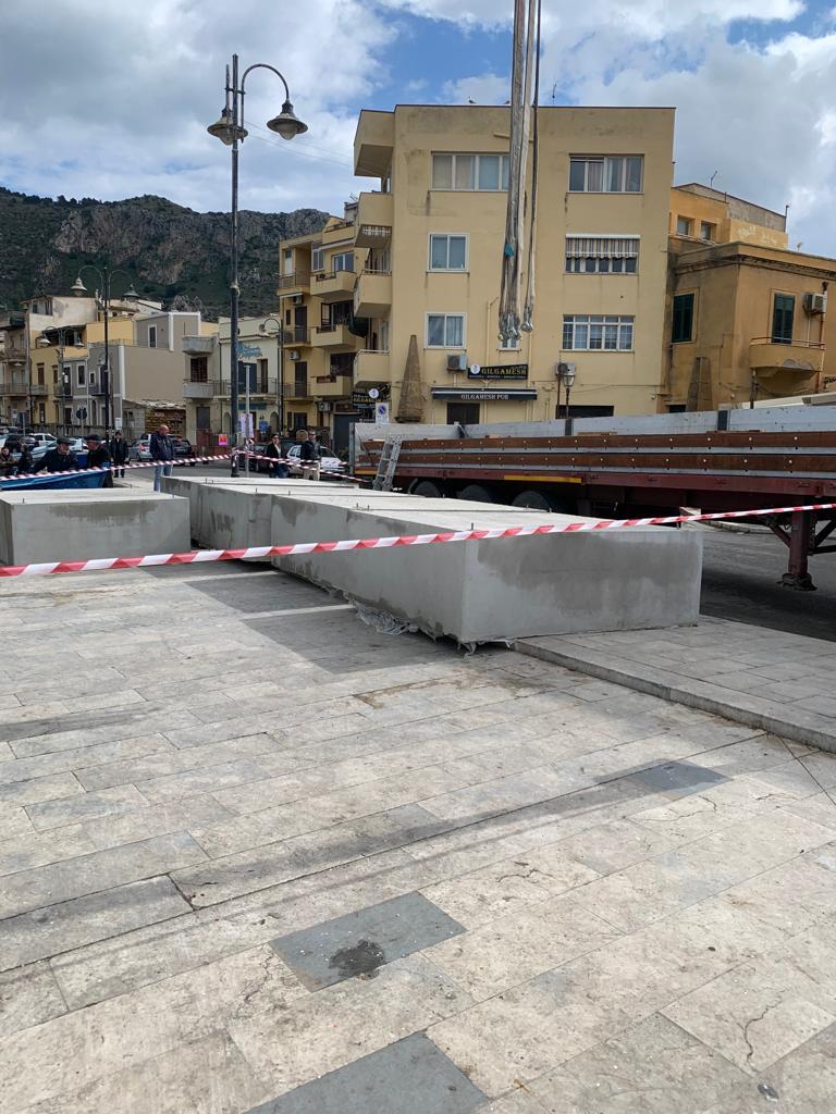 Sono arrivati oggi, nella frazione marinara di Aspra, i due pontili mobili galleggianti, di 12 metri, che verranno posizionati nell'area adiacente alla nuova zona del pescato ad Aspra.