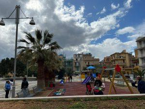Una giornata di festa la riapertura della rinnovata piazza Butera con annesso spazio gioco.