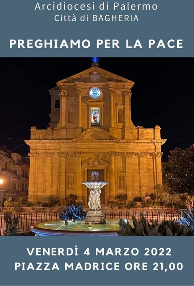 Il mondo della Chiesa e la Caritas cittadina hanno già organizzato alcune iniziative: Su indicazione del vescovo dell'arcidiocesi di Palermo, la comunità parrocchiale di Bagheria, ha organizzato un momento di preghiera, venerdì 4 marzo, alle ore 21,00 in piazza Madrice "Preghiamo insieme per la Pace.