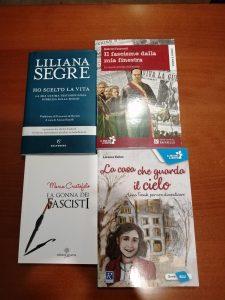 Tra i titoli immancabile il Diario di Anna Frank ma anche volumi dedicati ai perseguitati perché omosessuali come Homocaust di Massimo Consoli, ma anche ricordo ed esperienze di vita vissuta come quelle di Liliana Segre.