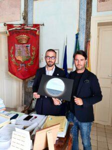 L’artista ha voluto spiegare al sindaco e all’assessore alla Cultura Daniele Vella il significato dell’opera donata, che, ha raccontato, può essere vista ed interpretata sotto più punti di vista.