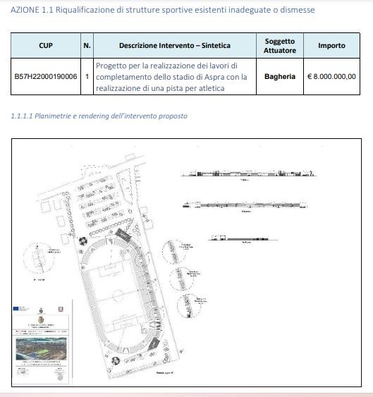 Tra gli interventi finanziabili, anche i due progetti bagheresi: la realizzazione del polo culturale e didattico attraverso il recupero e la rigenerazione urbana dell’area Villa Cattolica, ex mulino Cuffaro e Sicilcalce per un importo di 12 milioni di euro e il progetto per la realizzazione dei lavori di completamento dello stadio di Aspra con la realizzazione di una pista per atletica per un importo di 8.000.000 di euro.