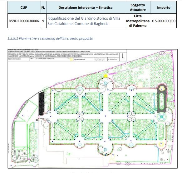 2 progetti presentati dalla città di Bagheria ed 1 direttamente proposto dalla Città metropolitana di Palermo, e, nello specifico, la realizzazione di un polo culturale e didattico dell'area Villa Cattolica, ex mulino Cuffaro e Sicilcalce e la realizzazione dei lavori di completamento dello stadio di Aspra con una pista per atletica, e la riqualificazione del giardino storico settecentesco del complesso monumentale di villa San Cataldo, sono stati approvati dalla commissione di valutazione, incaricata delle selezioni per la presentazione del Piano Urbano Integrato al Ministero dell’Interno - Dipartimento per gli Affari Interni e Territoriali, necessario per l'attuazione del Piano nazionale di ripresa e resilienza (PNRR).