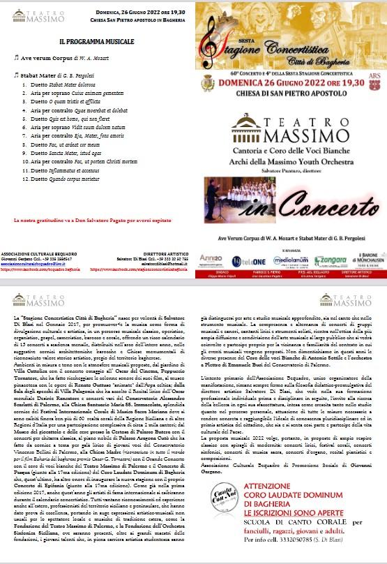 Sesta stagione concertistica città di Bagheria. Domenica 26 giugno 2022 quarto concerto.
