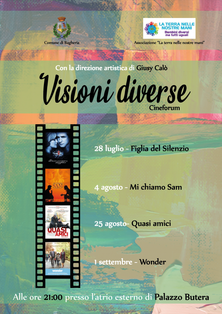 Si chiama "Visioni diverse" ed è una serie di appuntamenti cinematografici organizzati dall'associazione "La terra nelle nostre mani" e patrocinata dal Comune di Bagheria su interessamento dell'assessorato alle Politiche sociali coordinato da Emanuele Tornatore.