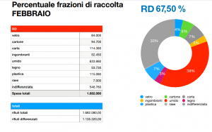Si unisce ai ringraziamenti al personale anche il presidente Matranga: «quando mi sono insediato l'indiffereziata era a 1.100 tonnellate, siamo arrivati a febbraio a 500, è un gran risultato. I cittadini stanno collaborando molto di più, utilizzano molto gli ecopunti e ne benifecia anche lo spazzamento potendo riorganizzare al meglio il personale addetto alla raccolta».Nello specifico questi sono i dati della raccolta per tipologia di rifiuto differenziato: