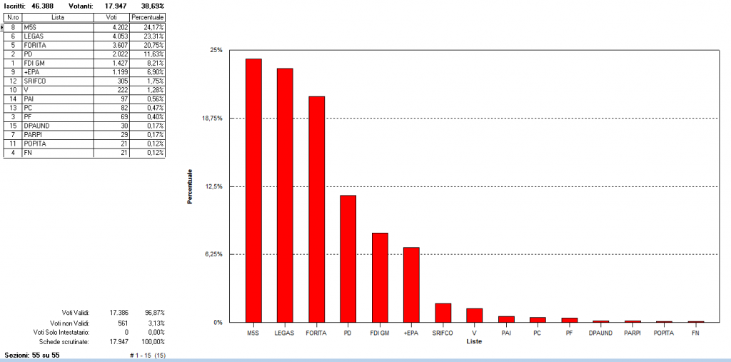 scrutinate 15 sezioni su 55 (clicca sull'immagine per ingrandire)