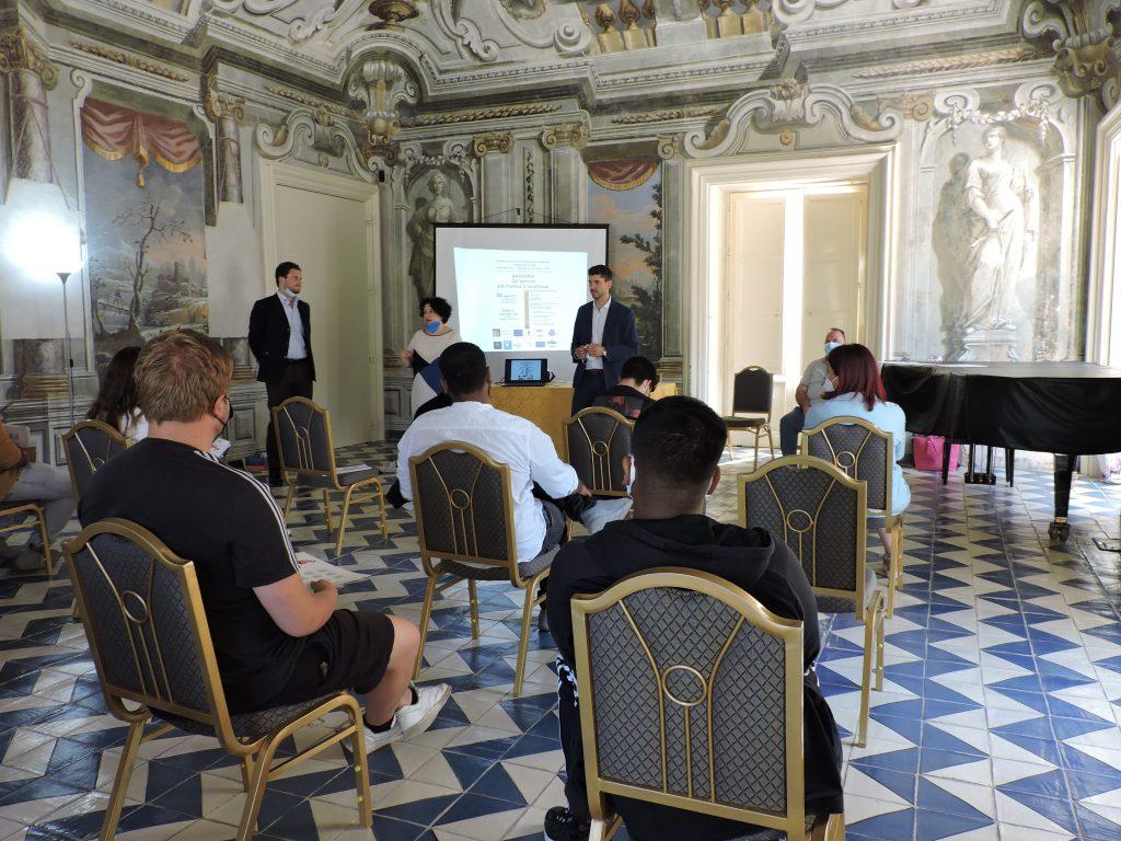 L’Assessore Barone ha dato il benvenuto ai ragazzi, descrivendo a grandi linee le risorse di Bagheria, incominciando con la menzione dalle numerose ville presenti in stile Barocco, motivo per il quale, il comune è conosciuto come “Città delle Ville”. L’assessore ha, inoltre, descritto ai giovani studenti europei, altre risorse bagheresi, rappresentate dalle bellezze paesaggistiche come Monte Catalfano e l’Arco Azzurro, e naturalmente evidenziando il ruolo di attrattore turistico giocato dallo Sfincione, specialità gastronomica locale. Sabrina Gianforte, ha approfondito in maniera ancora più accurata il patrimonio storico-culturale, artistico, enogastronomico e naturalistico bagherese, mostrando una presentazione a video, con delle slide che descrivevano i beni culturali, il borgo di Aspra, la costa, l’arte ceramica, le produzioni agricole e gastronomiche e l’arte del Carretto Siciliano, vera e propria icona di identità siciliana, già iscritta al REIS (Registro delle Eredità Immateriali della Sicilia), e candidato a essere tutelato dall’UNESCO.