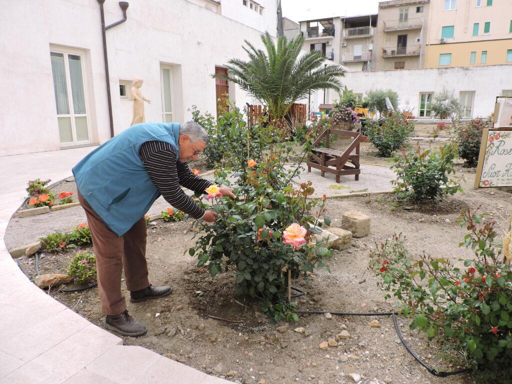 Il cortile di villa Butera è frutto dell'amorevole lavoro di diversi volontari. Le rose dedicate alla sorella vincenziana, Suor Rosa, sono curate da Matteo e Antonino Di Fiore, quest'ultimo ogni giorno visita il giardino per annaffiare le piante e curarle già dal 2018.
