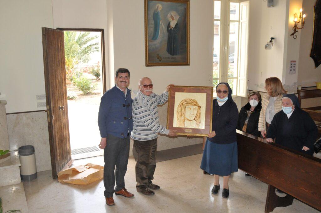 Nei giorni scorsi, le suore vincenziane che hanno sede storica a villa Butera, hanno ricevuto dall'artigiano, un pirografia su legno, che è stata posizionata all'altare della Chiesetta.