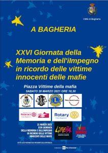 All'evento, promosso dal Comune e organizzato da Libera in sinergia con Avviso Pubblico, saranno presenti con un solo rappresentante, nel rispetto delle norme anti-covid: la Consulta giovanile di Bagheria, Avviso Pubblico, il Leo club, il Rotaract, i Lions, il Rotary Bagheria e il Centro Studi Pio La Torre.