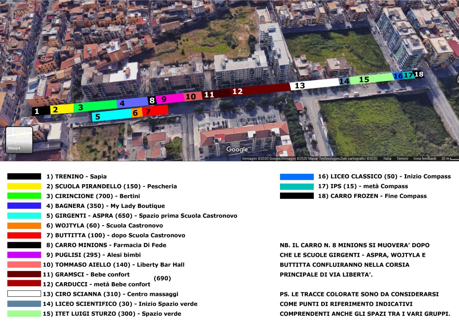 Al fine di semplificare l'organizzazione dei gruppi che si raduneranno come detto in via Libertà e con l'obiettivo di rendere più sicura e scorrevole la manifestazione è stata pubblicata sul sito web del Comune di Bagheria, una mappa del raduno realizzata appositamente per indicare la posizione di partenza dei partecipanti.