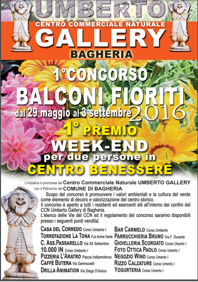 Il CCN con il patrocinio del Comune ha organizzato il primo concorso “Balconi Fioriti” che si svolgerà dal 29 maggio al 3 settembre 2016.