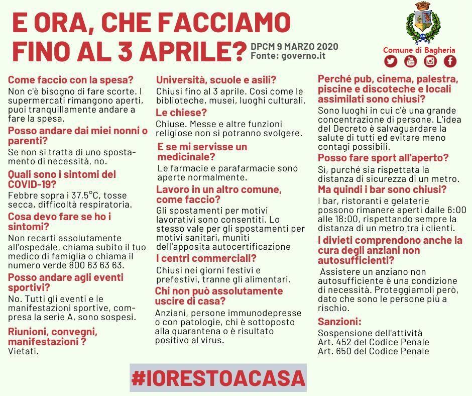 Vi ricordiamo che anche su sito del Comune di Bagheria c'è una sezione analoga dov vengono riportate tutte le stesse informazioni del Governo e quelle specifiche comunali nell pagina che state leggendo. |