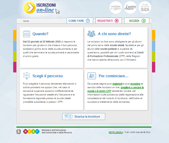 Già da oggi, 12 gennaio, il Ministero dell’Istruzione offrirà alle famiglie la possibilità di prendere confidenza con il sito dedicato (http://www.iscrizioni.istruzione.it) e di potersi registrare.