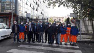 Il comune di Palermo, come forma di protesta, è presento sotto l'assessorato , con tre auto-compattatori.